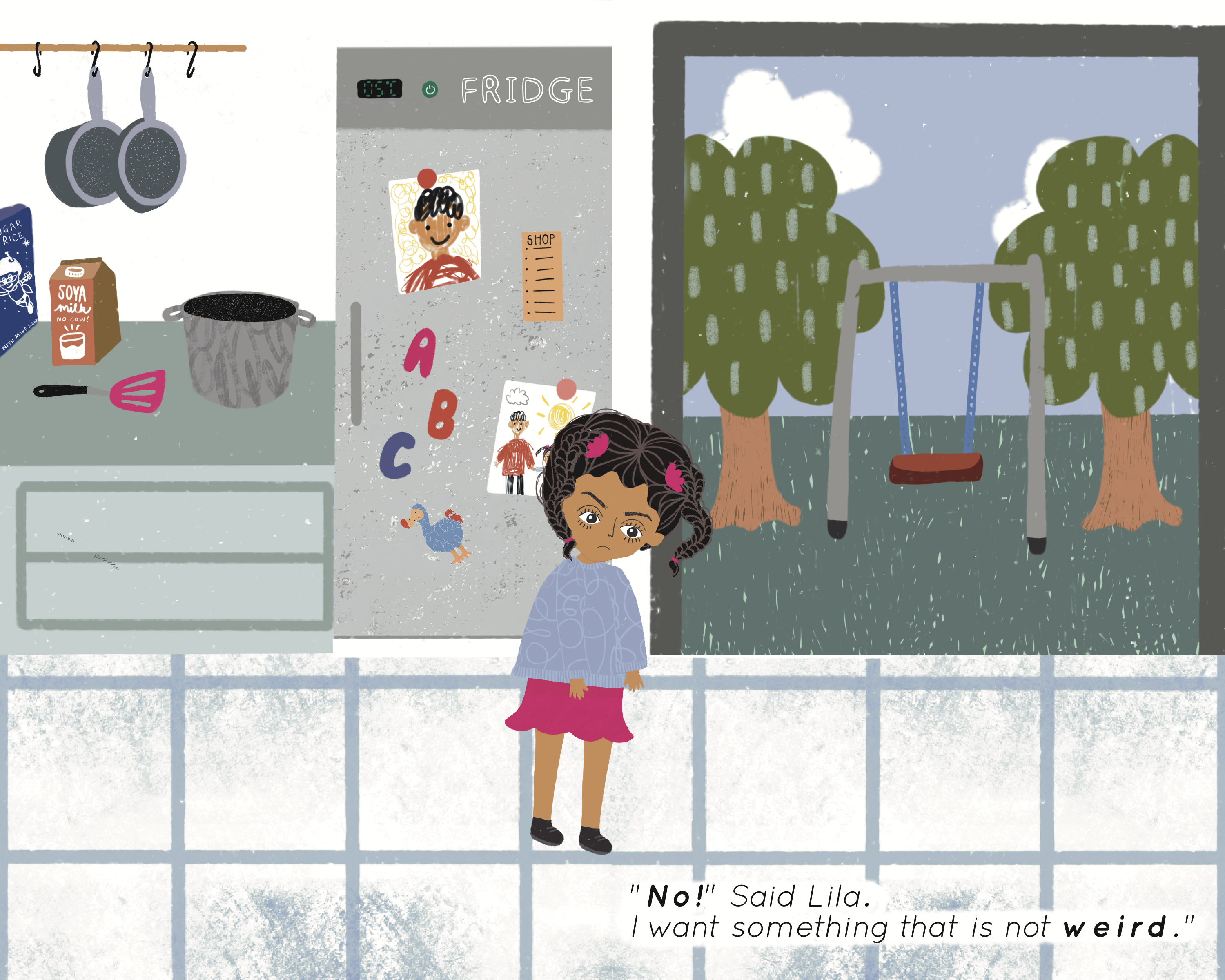 Lila’s Lunch is a children’s book I am currently working on. It’s about a girl called Lila who brings chickpea curry to school and gets bullied for it. She ends up sat alone as no one wants to sit next to the girl with weird food. This story aims to normalise different cultures and their food and help children who may be experiencing similar things feel comfortable in their culture.
